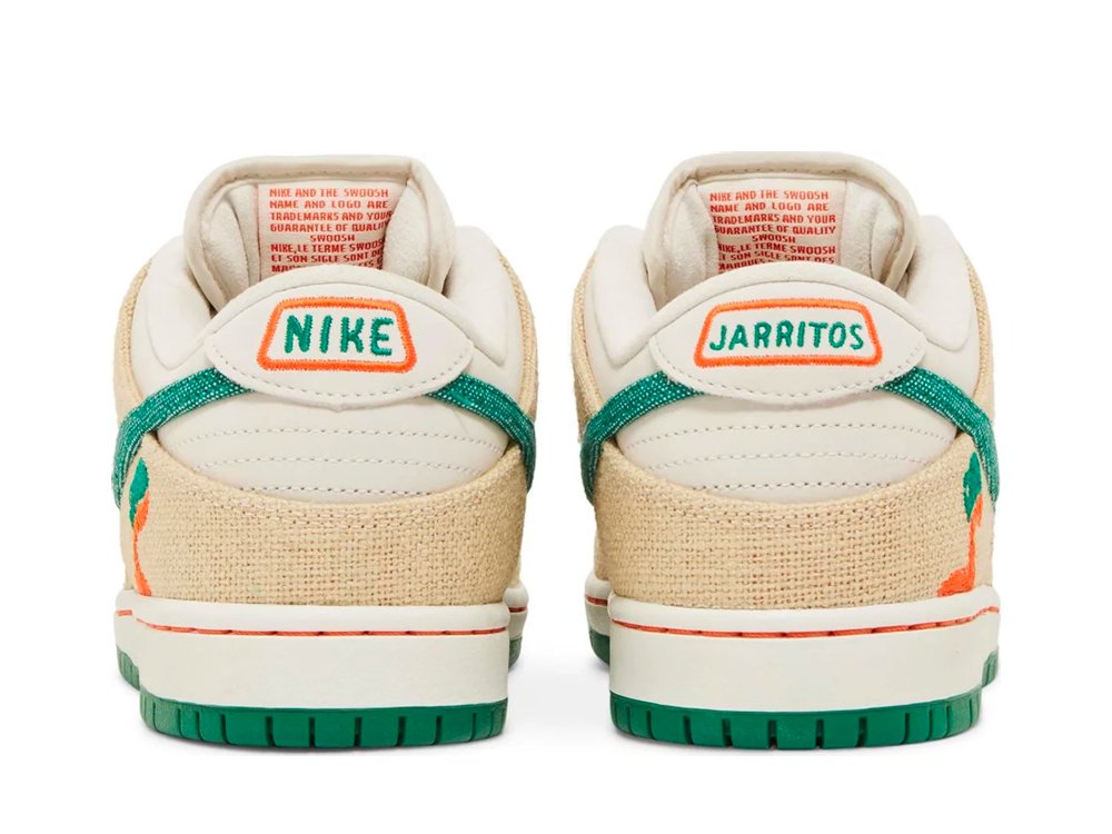 A collaboration that blends sneaker culture with authentic flavor. The Nike SB Dunk Low Jarritos pays tribute to the iconic Mexican soda brand with a design full of vibrant details. Featuring premium white leather, hemp canvas overlays, and bold orange-and-green accents inspired by Jarritos’ signature branding, this sneaker stands out as both stylish and collectible. The special tear-away canvas reveals hidden orange layers underneath, adding a unique twist to its look. With Zoom Air cushioning and durable construction, it’s made for both skate performance and everyday wear. A must-have for sneakerheads and collectors alike.